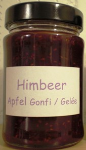 Zutaten: Frische Quitten (entsaftet) (55 %), Himbeeren (45 %) aus dem eigenen Garten, Zucker und Geliermittel