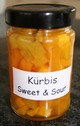 Zubereitet mit gartenfrischem Kürbis,Zwiebeln, Peperoni, Zucker, Essig, Pfeffer und Rosinen.